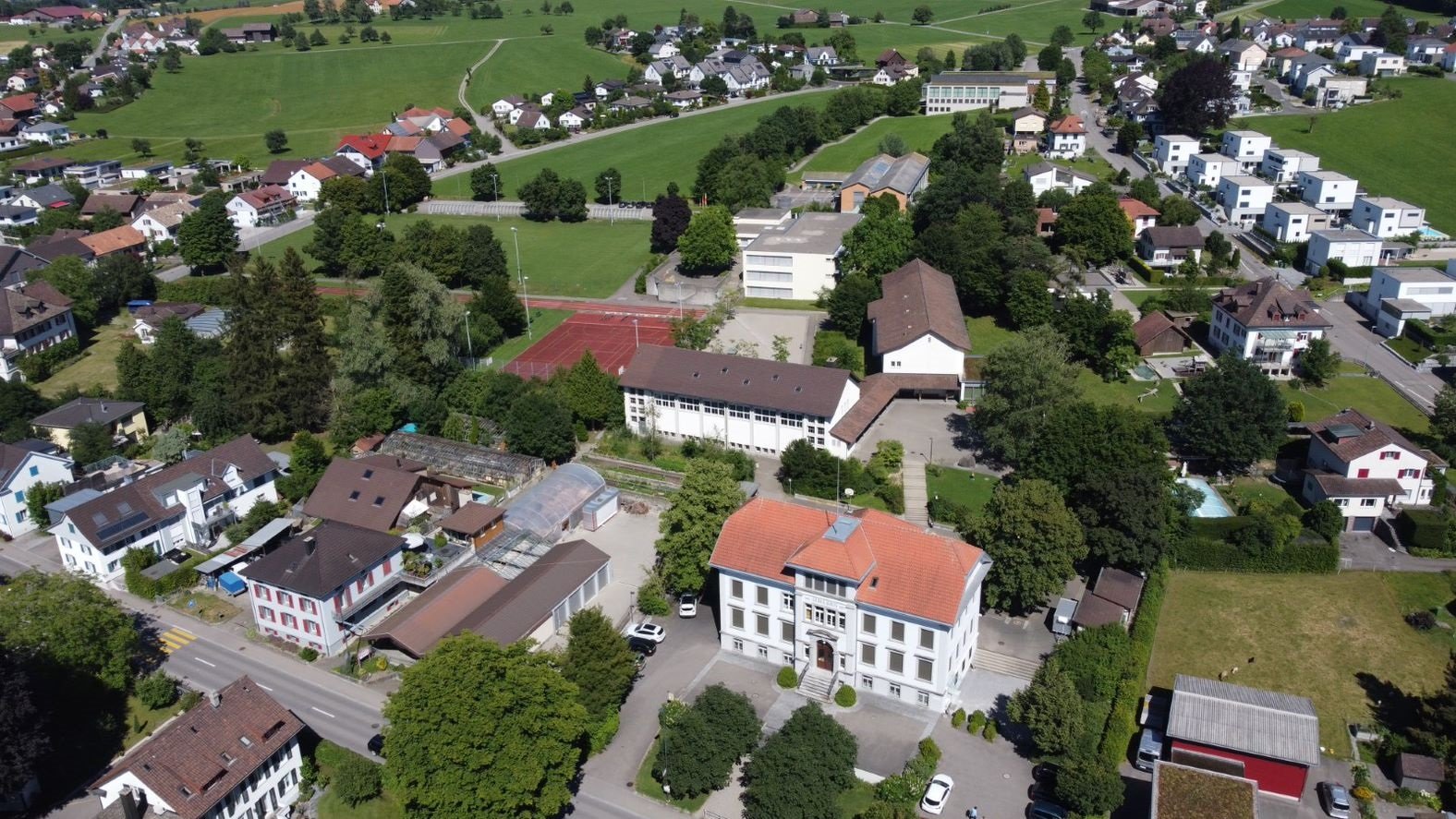 Die Schulanlage in Wängi befindet sich im Dreieck der Dorf- und Steinlerstrasse sowie der Chüechligasse.